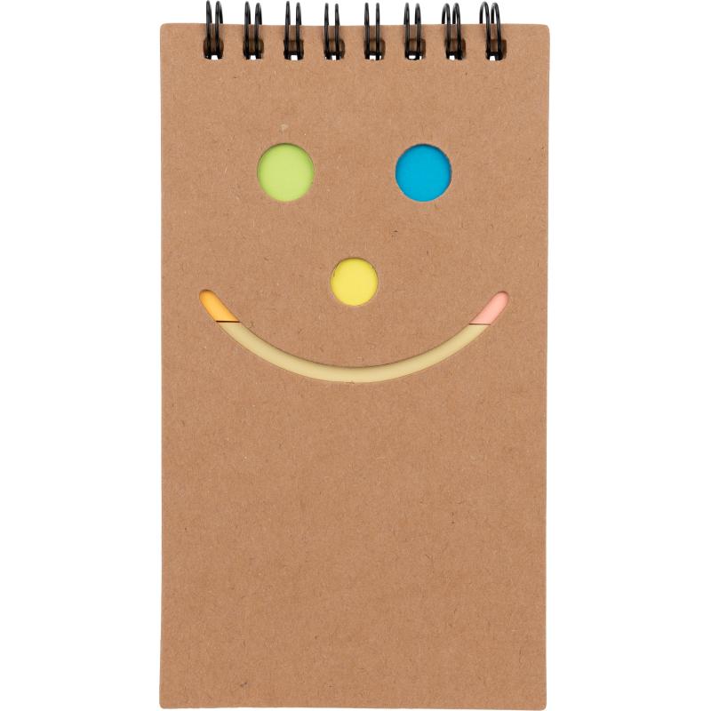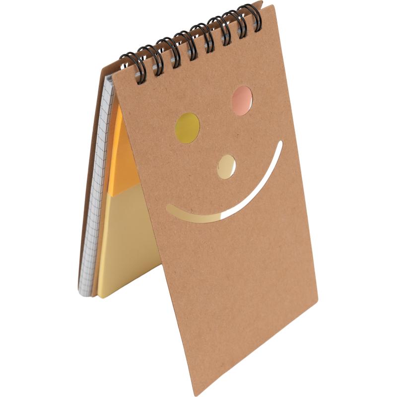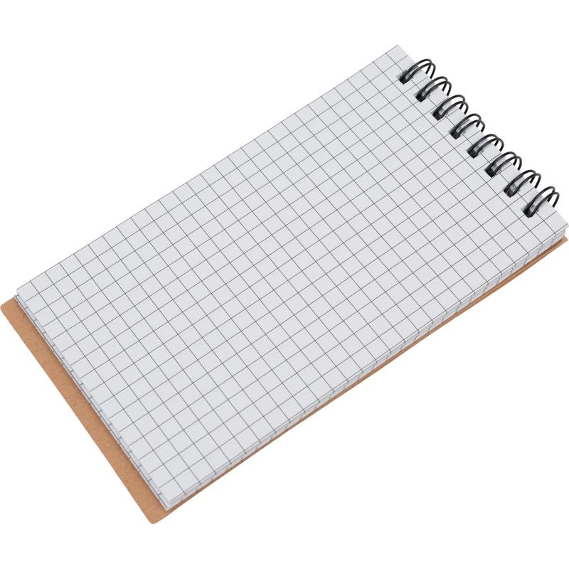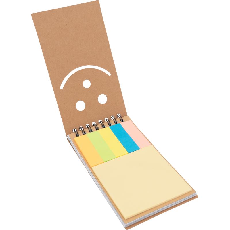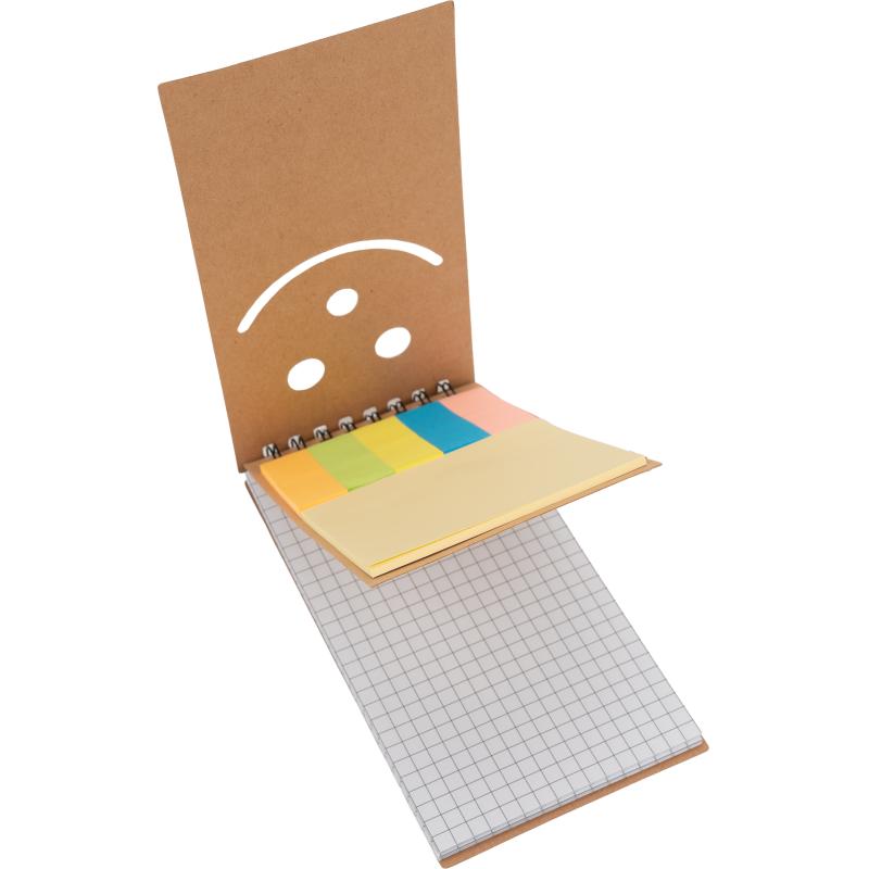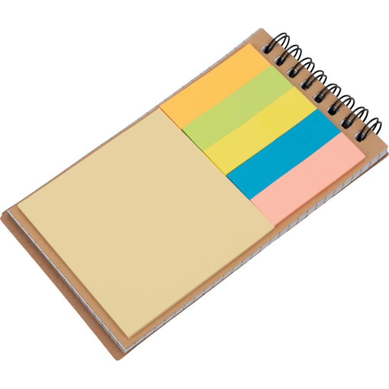 Notes na spirali w kartonowej okładce, z 50 karteczkami w kratkę i 5 małymi bloczkami kolorowych karteczek do zaznaczania.