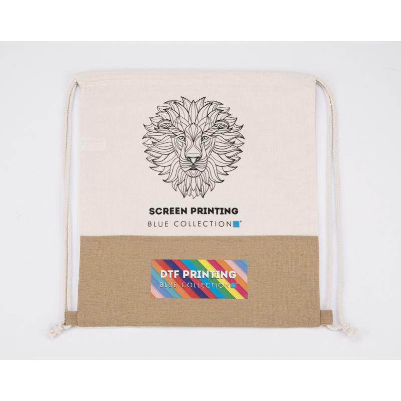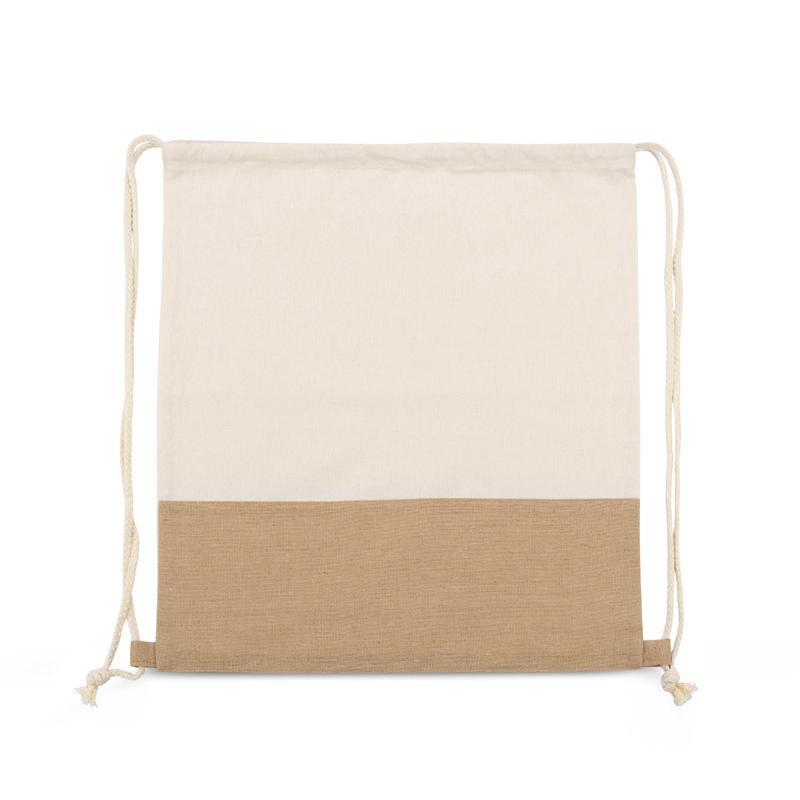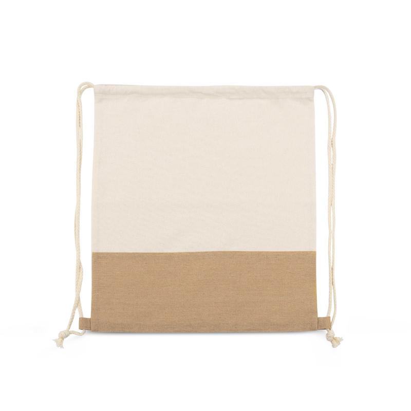 Worek JUTIK wykonany jest z bawełny (160g/m2) połączonej z materiałem podobnym do juty. Całość wygląda bardzo naturalnie i ciekawie. Worek jest jednokomorowy, zaciągany na bawełniane sznureczki.