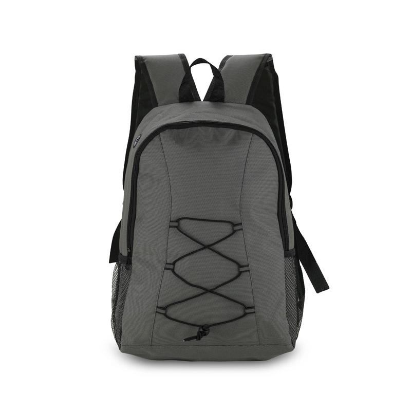 Plecak KAPIRO wykonany z poliestru 600D. Posiada jedną komorę główną zamykaną na zamek oraz dwie siateczkowe kieszonki boczne. Czarne gumki pełnią praktyczny element podróży – można wykorzystać to miejsce do zapakowania małego kocyka lub lekkiej kurtki.