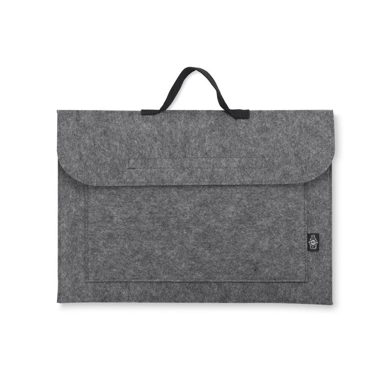 Stylowe etui na laptop TARO wykonane z recyklingowanego filcu rPET. Etui jest poręczne i lekkie mieszczące laptop 15”. Dodatkowa kieszeń umożliwia przechowywanie dokumantów, czy drobiazgów. Uchwyt ułatwia wygodne przenoszenie. Zamykane na rzep.