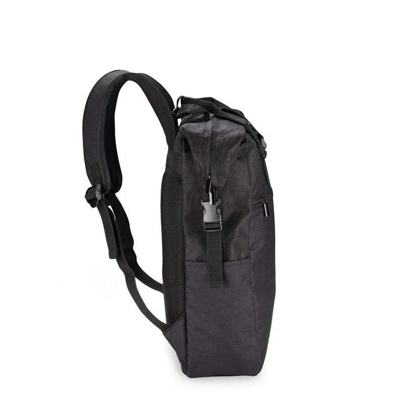 Plecak DEMOKO to produkt oryginalny i niebanalny. Posiada szerokie zamknięcie na suwak oraz wygodne rączki. Na zewnątrz jest jedna kieszonka zapinana na zamek i dwie małe boczne idealne na bidon. W pasie umieszczony został pasek zapinany na klamrę ułatwiający dopasowanie plecaka, zwiększając wygodę użytkowania. Plecy dodatkowo profilowane. Do plecaka zmieści się laptop 17”. Wykonany jest z poliestru 600D rPET.