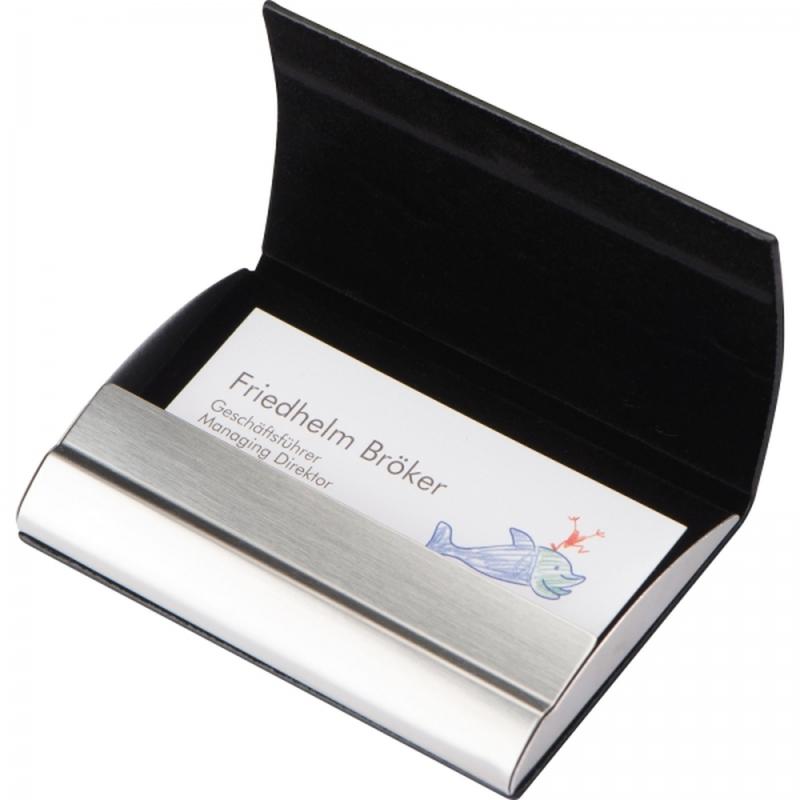 Etui na wizytówki wykonane ze skóry syntetycznej i metalu, zamykane na magnes.
