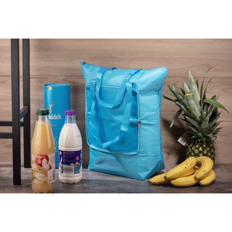 PINO to praktyczna torba składana z warstwą termoizolacyjną, idealna na zakupy, plażę czy pikniki. Posiada długie uszy, które zapewniają wygodę noszenia. Dzięki termoizolacji doskonale utrzymuje temperaturę przechowywanych produktów. Jest zapinana na suwak, a po złożeniu zajmuje niewiele miejsca.