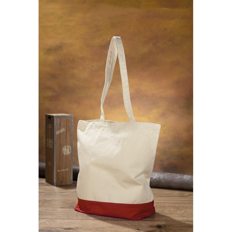 Torba bawełniana VIBO to funkcjonalny produkt reklamowy, wykonany z wysokiej jakości materiału o gramaturze 340 g. Długie uchwyty zapewniają wygodę noszenia na ramieniu, a szerokie dno umożliwia pakowanie większych przedmiotów. Charakterystycznym elementem torby jest kolorowy spód, który wyróżnia ją na tle innych modeli. Idealna na targi, zakupy czy plażę, sprawdzi się jako praktyczny upominek reklamowy. Dzięki dużej powierzchni do znakowania, stanowi doskonałą opcję na promocję marki.