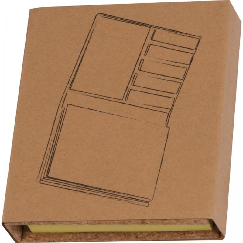 Notatnik w oprawie korkowej z różnokolorowymi małymi karteczkami samoprzylepnymi (po 25 sztuk), żółtymi karteczkami samoprzylepnymi (25 sztuk) i notesem z 200 kartkami.