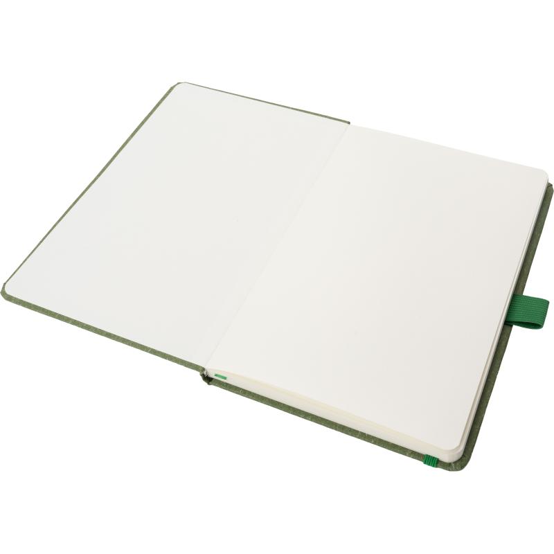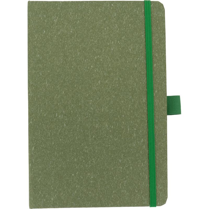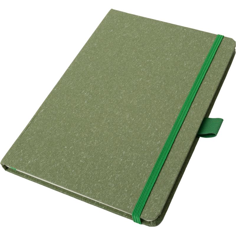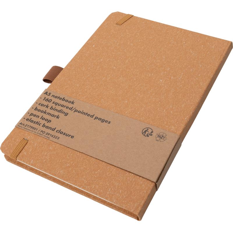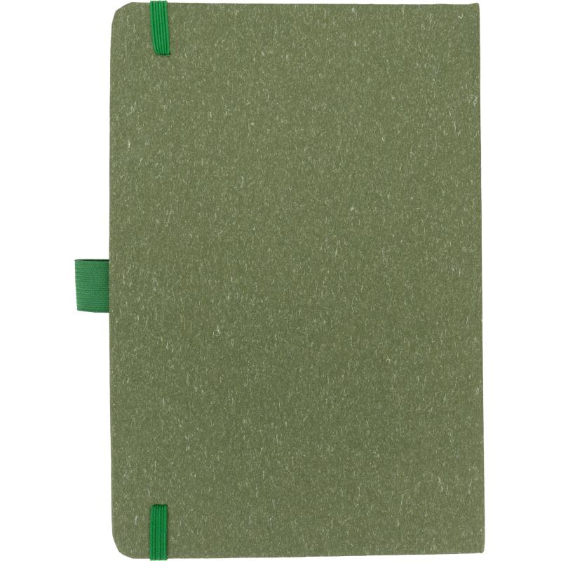 Notes o formacie A5 z zakładką i 160 stronami w kropki, zamykany na gumkę. Zarówno tekturowa okładka, jak i kartki są wykonane z papieru pochodzącego z recyklingu.