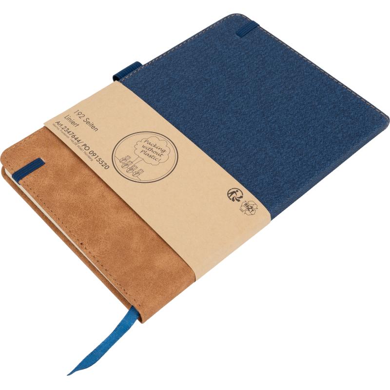 Notes o formacie A5, z okładką zamykaną na gumkę i ze 192 stronami w linie.