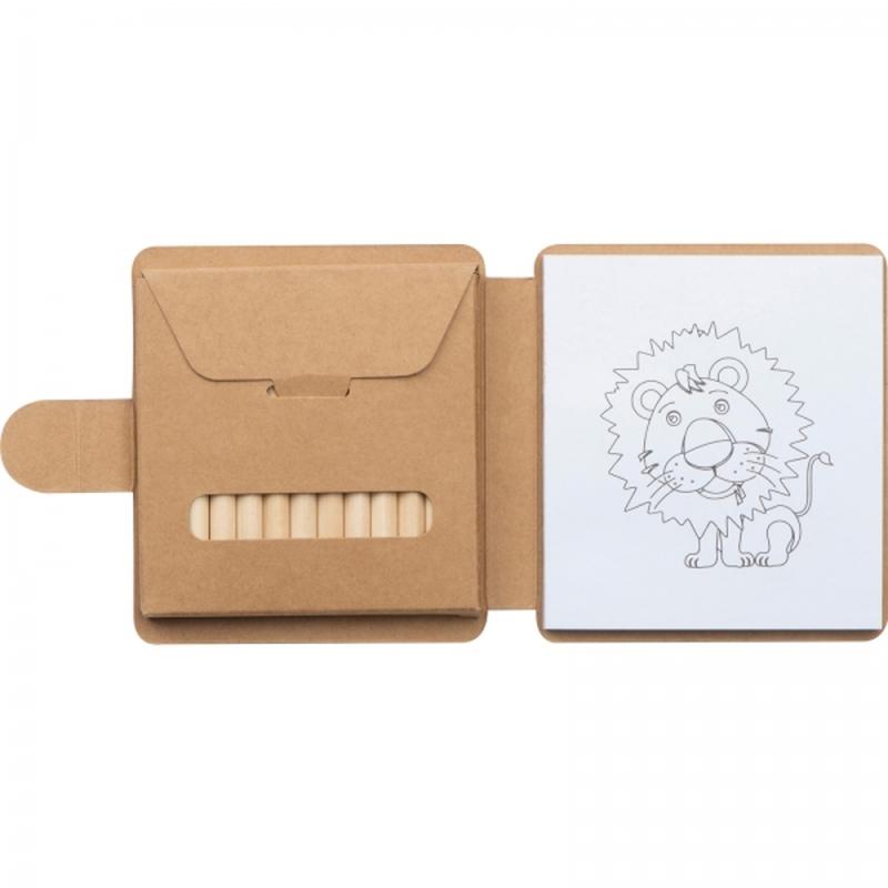 Kolorowanka w formie książeczki, z zestawem 12 kolorowych kredek i bloczkiem z 40 kartkami (12 kartek z motywem do kolorowania i 28 czystych kartek).