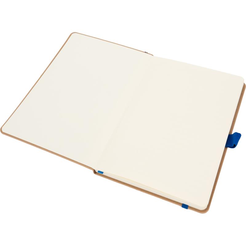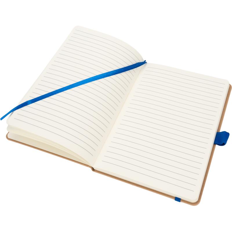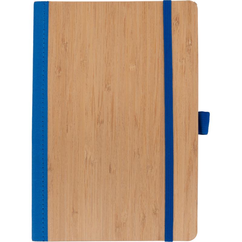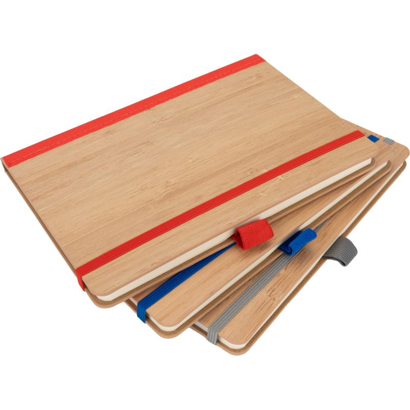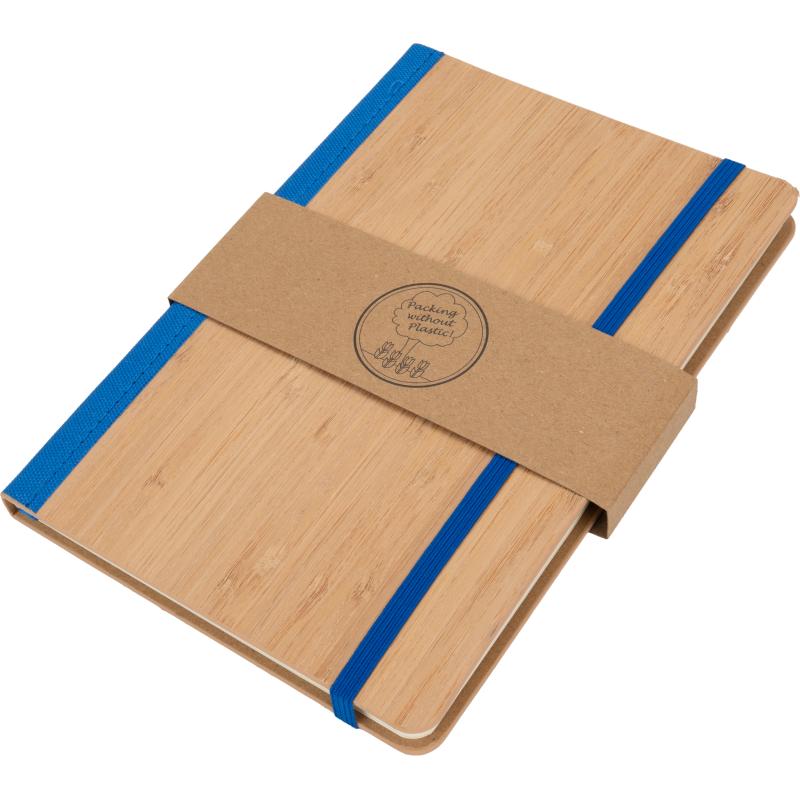 Notes o formacie A5, wykonany z bambusa i poliestru pochodzącego z recyklingu. Notes ma 192 stron w linie, zamknięcie na gumkę i pętelkę na długopis.