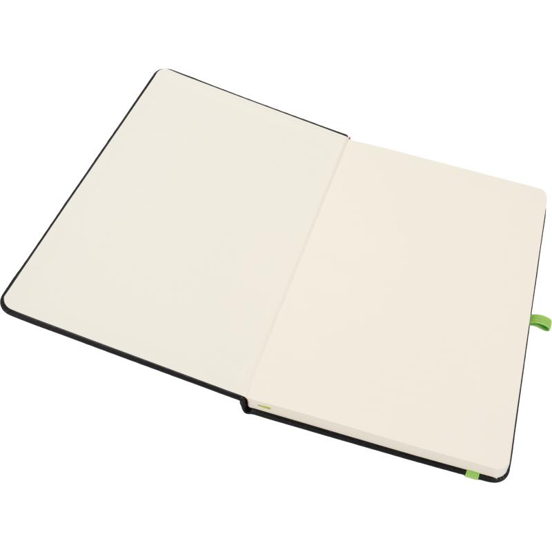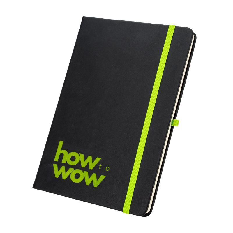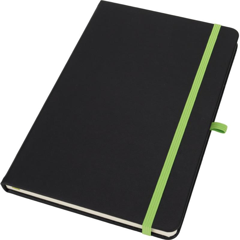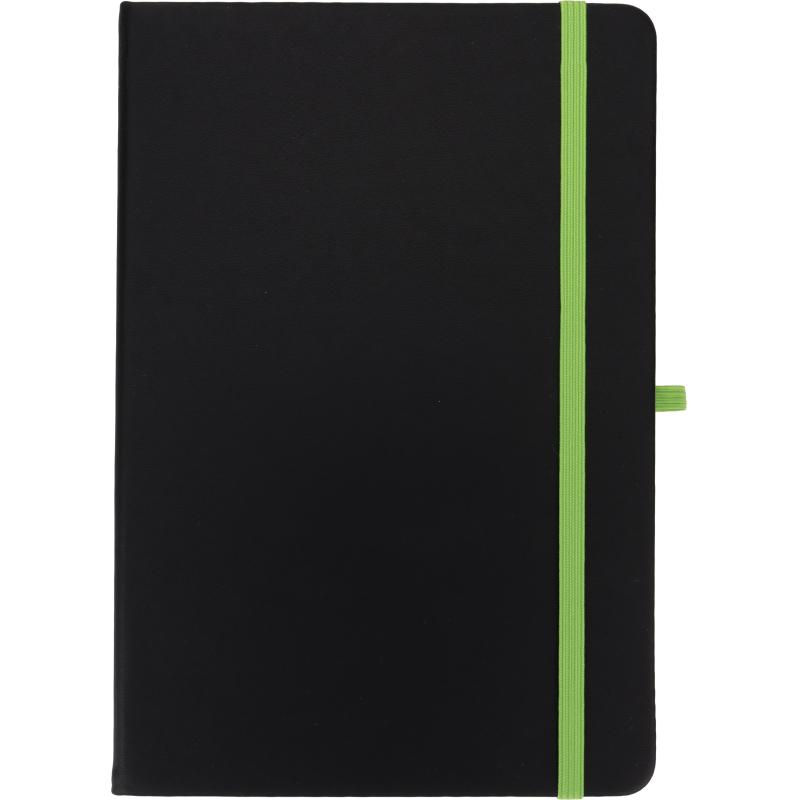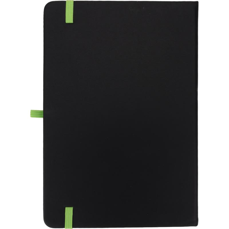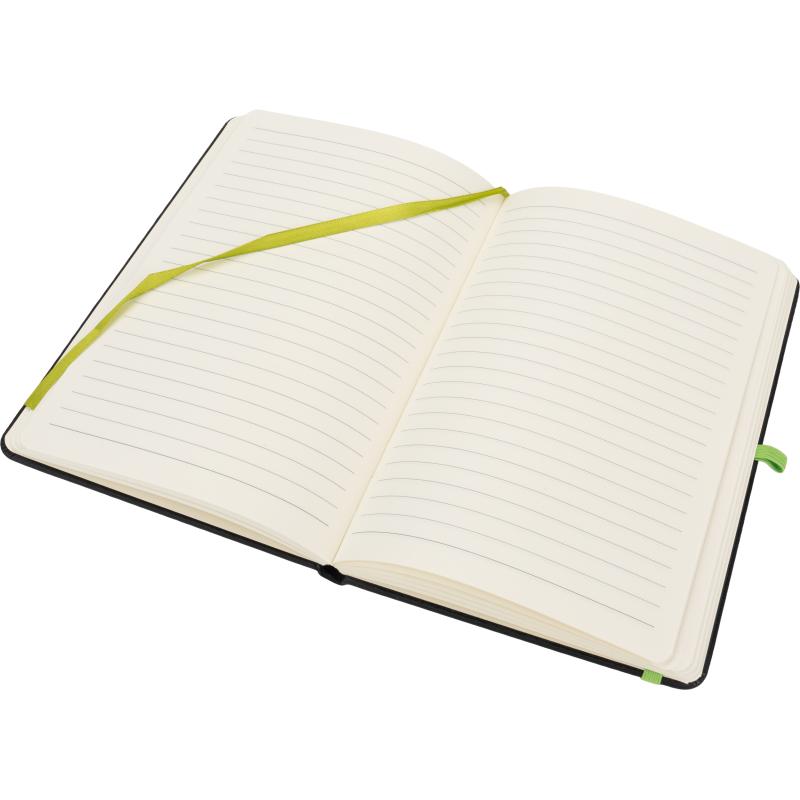 Notes o formacie A5, z okładką wykonaną z PU. Posiada 192 stron w linię, o gramaturze 70 g/m2. Notes ma również zakładkę i gumkę do zamykania. Grawer odsłania kolor okładki.