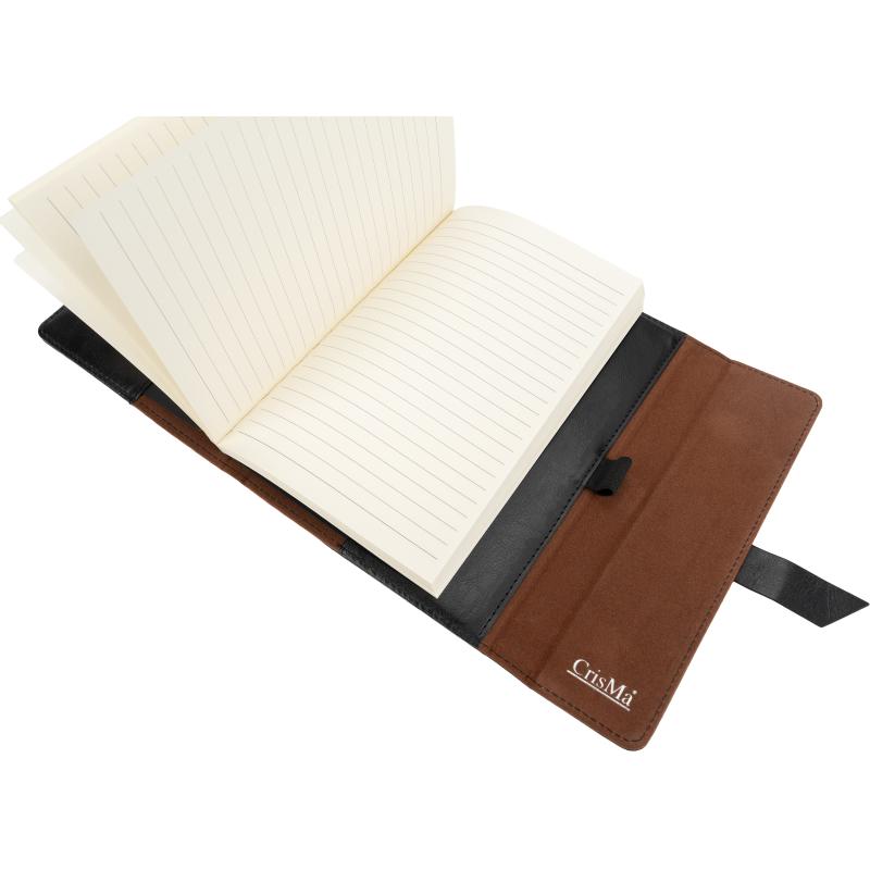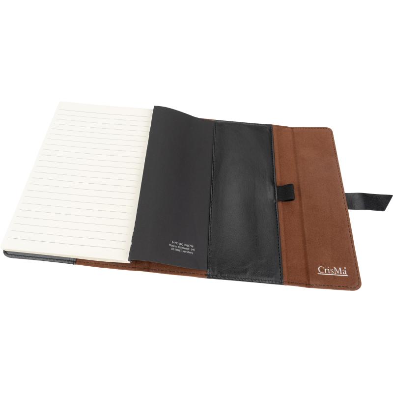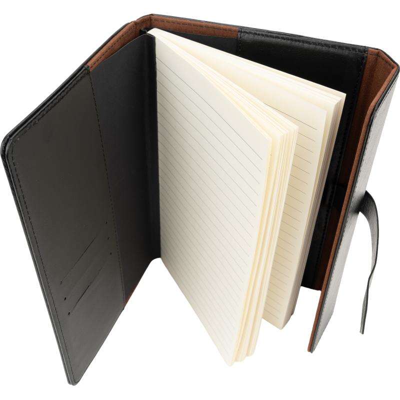 Notes A5 w skórzanej oprawie, z 80 kartkami w linie, z zakładką i szlufką na długopis.
