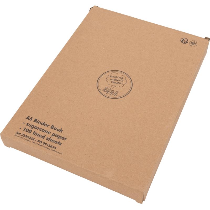 Kołonotatnik A5 z okładką z PU, 100 kartkami w linie, z trzciny cukrowej i szlufką na długopis.
