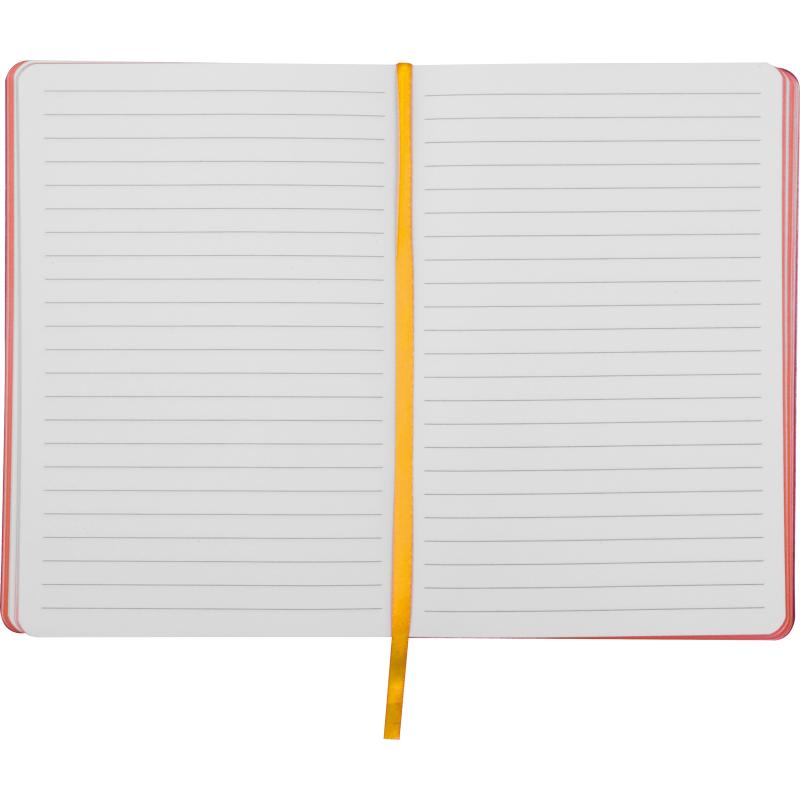 Notes z okładką z PU z recyklingu, 160 stronami w linie, wykonanymi z papieru z recyklingu, z kolorowymi krawędziami i materiałową zakładką.