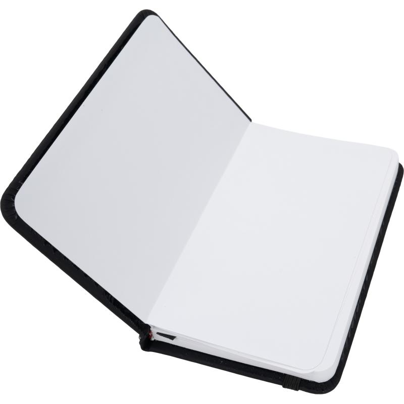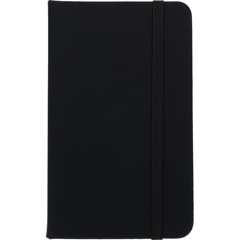 Notes (160 stron) w linie, w twardej oprawie z PU. Posiada tasiemkową zakładkę oraz gumkę umożliwiającą zamknięcie.