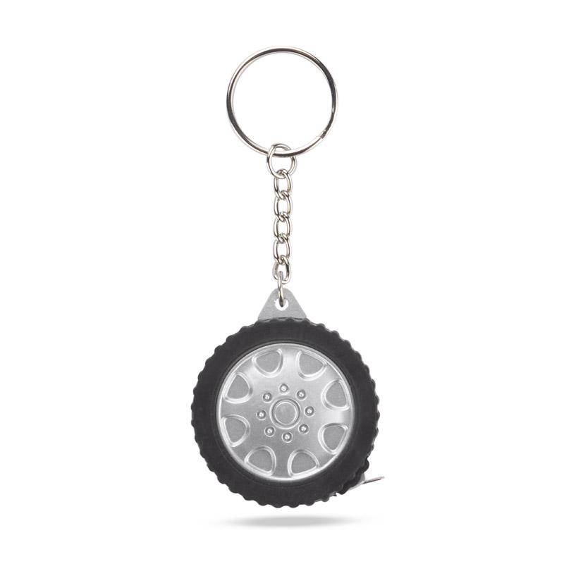 Breloczek w kształcie opony, z miarką o długości 1 metra. Wykonany z tworzywa, nadruk wykonujemy na rewersie.