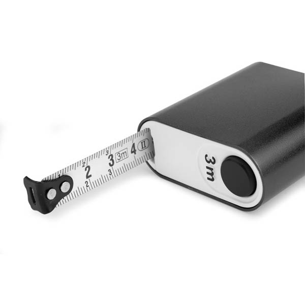 Elegancka aluminiowa miara o długości 3 m. Posiada automatyczną blokadę i pasek w celu zwiększenia komfortu użytkowania.