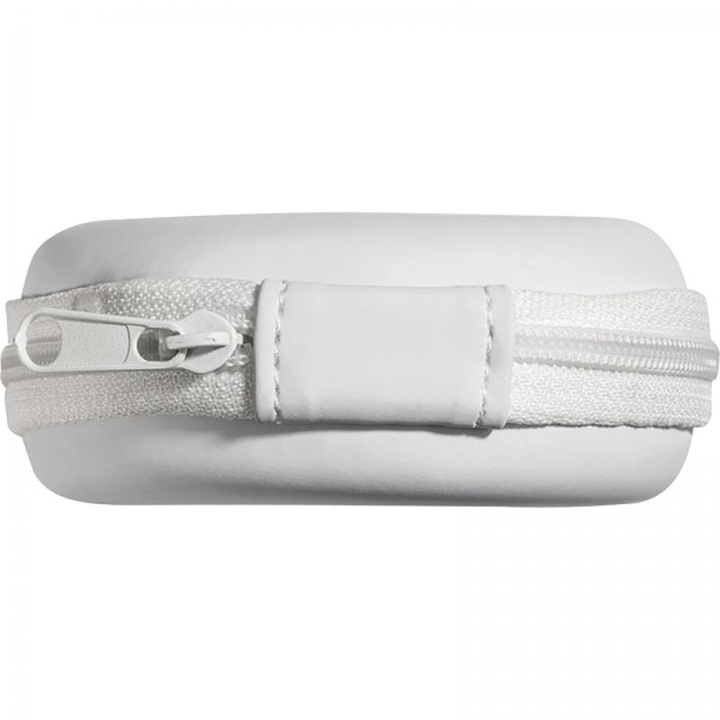 Słuchawki z Bluetooth i regulacją głośności, umieszczone w etui z PU. Do słuchawek dołączony jest kabelek do ładowania z wejściem USB.
