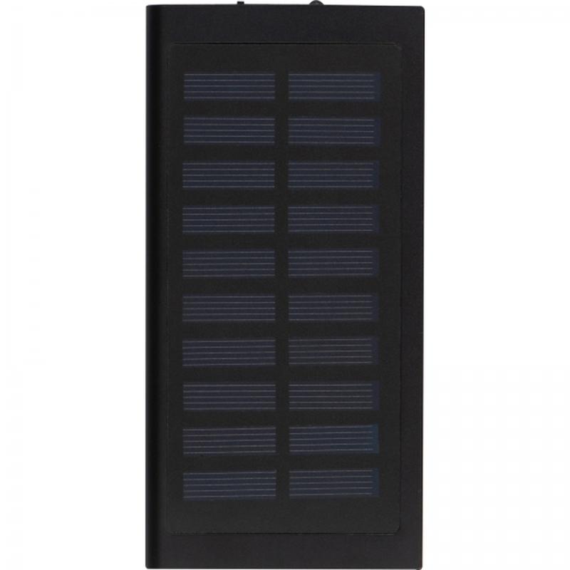 Wykonany z metalu solarny power bank o pojemności 8000mAh z kablem USB 3w1 do ładowania.