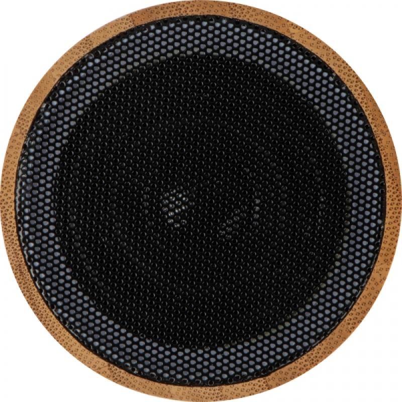 Głośnik Bluetooth z powłoką bambusową, podświetleniem od spodu, gniazdem na kartę i kablem do ładowania.