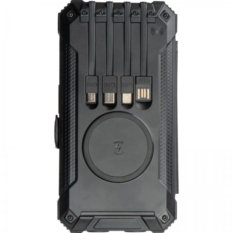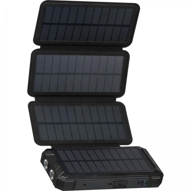 Power bank słoneczny o pojemności 20 000 mAh i czterema rozkładanymi panelami słonecznymi zapewniającymi wydajny pobór energii słonecznej . Dane techniczne: Pojemność: 20000 mAh Micro Input: DC 5V, 2A Output 1: DC 5V, 3A Type-C output: DC 5V, 3A Type-C input: DC 5V, 2A Output 2: DC 5V, 2A Moc ładowania bezprzewodowego: 5W Inne: Dostepne wejścia: USB A, typ C, mikro USB Dostępne kabelki: lighting, typ C, mikro USB, USB Kabelek do ładowania: USB A i typ C