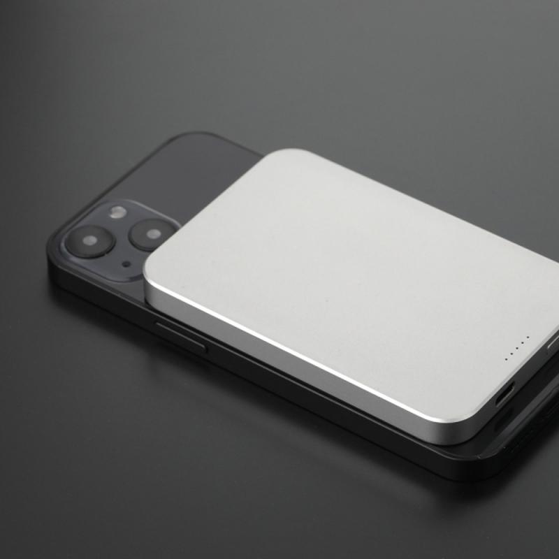 Power bank o pojemności 5 000 mAh z funkcją ładowania indukcyjnego do smartfonów z techologią Qi i do iPhone’ów. Posiada funkcje Magsafe, kompatybilną z iPhone’ami nowszej generacji, dzięki której telefon przylega do powerbanka, ułatwiając ładowanie bez konieczności zdejmowania etui ochronnego. W smartfonach konieczne jest dokupienie etui magnetycznego, by funkcja Magsafe działała. Dane techniczne: Bateria: Litowo-polimerowa Pojemność: 5000 mAh Wejście: 5V, 2A Moc ładowania bezprzewodowego: 10W Inne: Dołączony kabelek ze złączami USB A i typ C