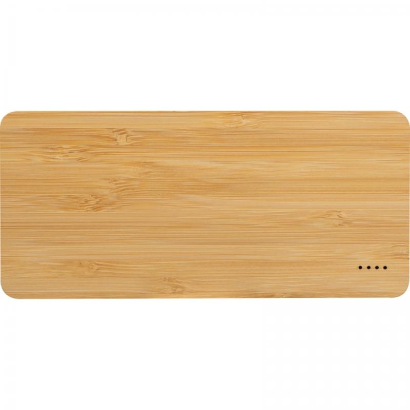 Power bank w drewnianej obudowie, o pojemności 20 000 mAh z kablem do szybkiego ładowania. Dane techniczne: Bateria: 20000 mAh 3.7V 74W (2x 10000 mAh) Zawiera jeden port szybkoładujący typ C (input) Output: USB A x2 Input: Type C max.moc: 22,5W Inne: Dołączony kabelek ze złączami USB A i typ C