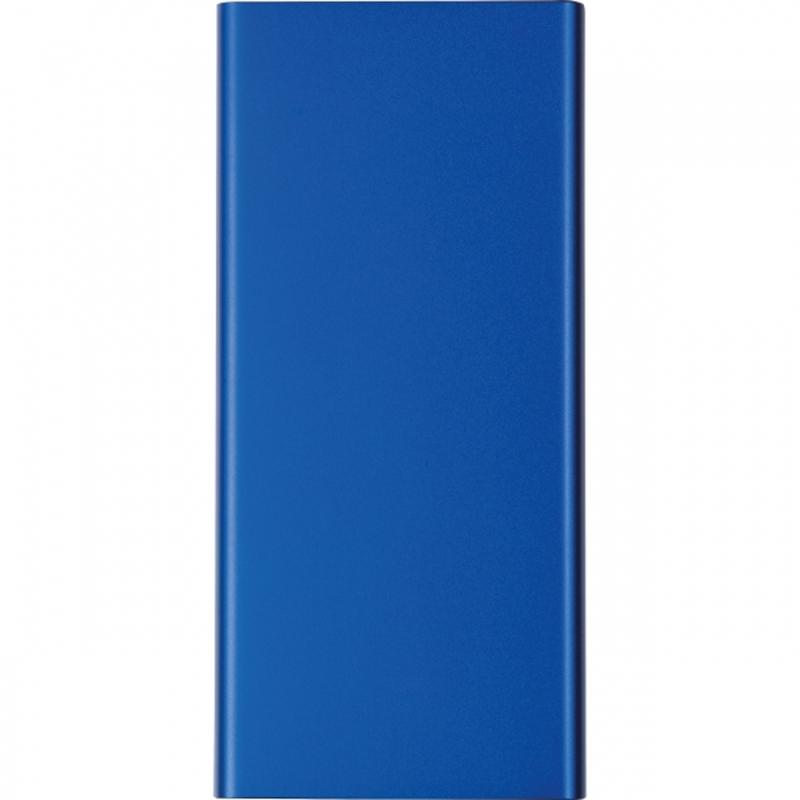 Power bank z aluminium pochodzącego z recyklingu, o pojemności 10 000 mAh, z wyświetlaczem LCD i kabelkiem do ładowania. Power bank posiada 2 porty USB i wejście typu C.