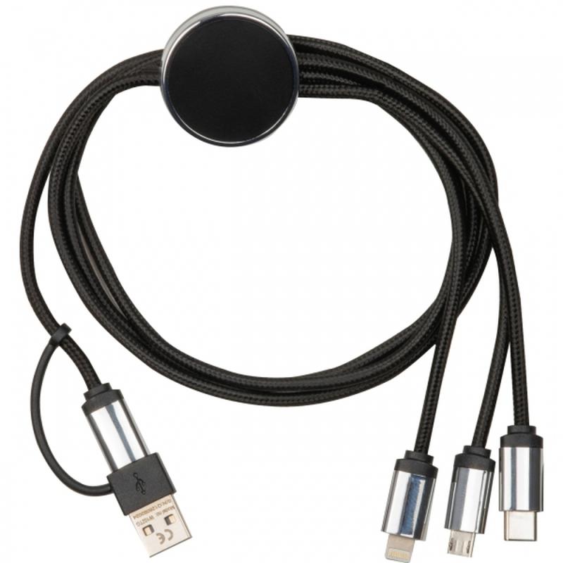 120 cm kabel do ładowania USB C/A, z trzema różnymi końcówkami - typu C, micro USB i lightning. Wygrawerowane logo będzie podświetlać się po podłączeniu kabla do prądu.