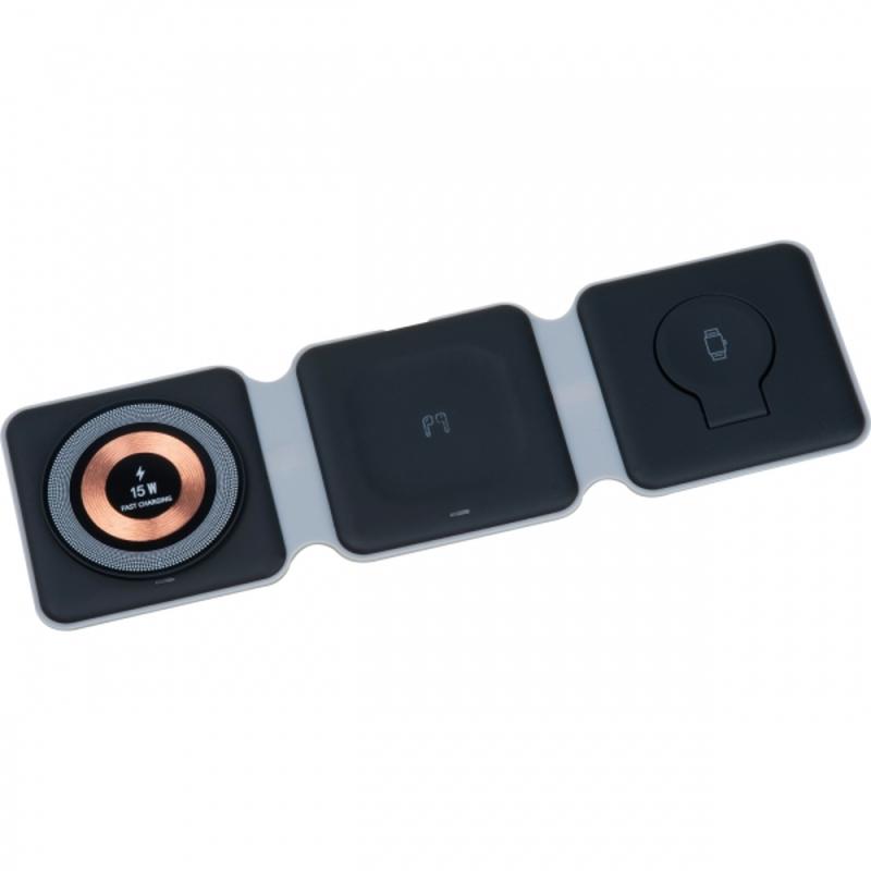 Praktyczna stacja indukcyjna, która jednocześnie naładuje 3 urządzenia - telefon, słuchawki i smart-watch.