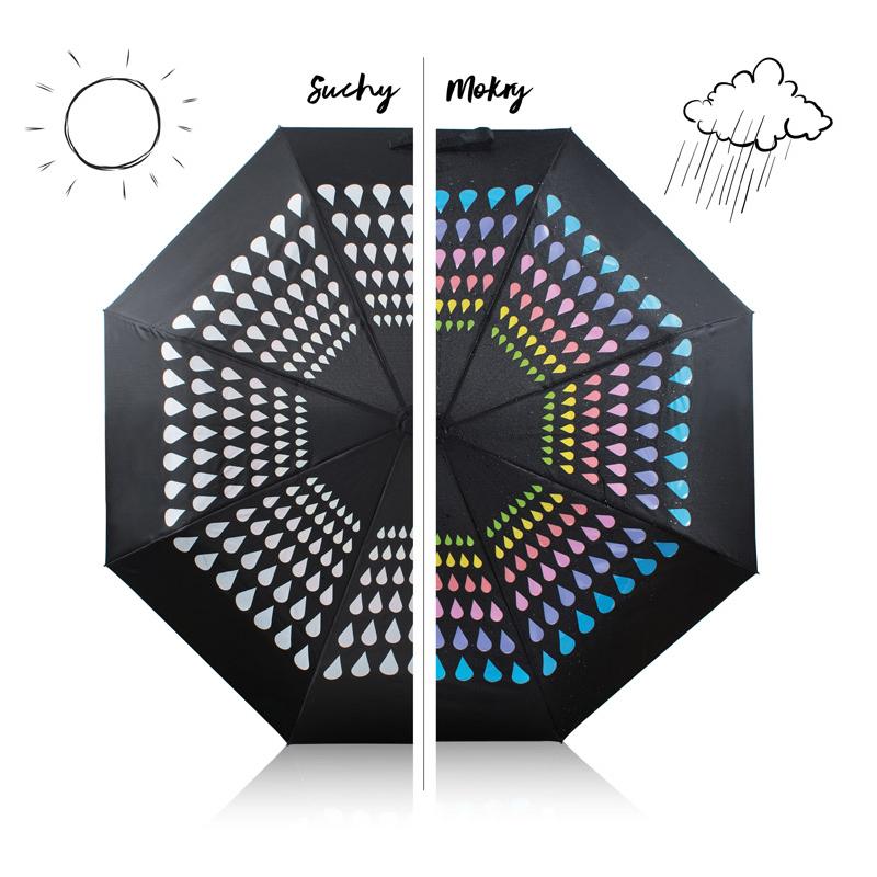 Składany parasol manualny CROPLA to bardzo efektowny gadżet. Posiada zaprojektowany przez grafików Blue Collection nadruk zmieniający kolor pod wpływem wody. Parasol ma metalowy stelaż i jest wykonany z poliestru pongee 190T.