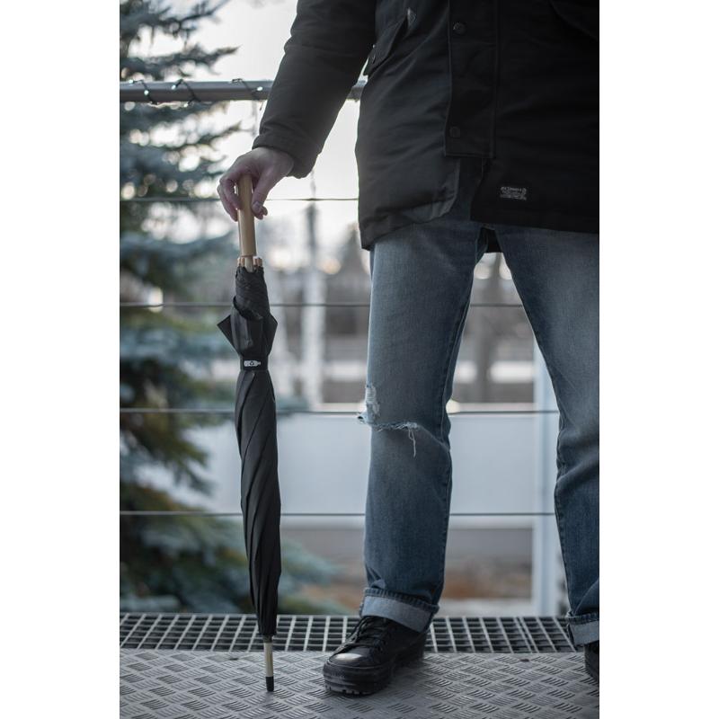 Parasol POTIK to klasyczny model z automatycznym otwieraniem i ręcznym zamykaniem. Jego czasza wykonana jest z wytrzymałego rPET poliestru 190T, a konstrukcję wzmacnia stelaż z włókna szklanego, metalu i drewna, co zwiększa odporność na wiatr. Drewniany trzon i bambusowa rączka nadają mu elegancki wygląd, a drewniane zakończenia paneli podkreślają naturalny charakter. Lekki, solidny i wygodny, zapewnia niezawodną ochronę w deszczowe dni. Możliwość znakowania czyni parasol POTIK praktycznym gadżetem reklamowym.