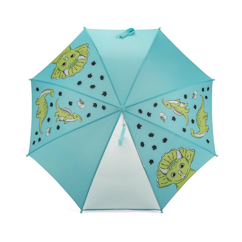 Parasol dziecięcy DINO to kolorowy i lekki model stworzony z myślą o najmłodszych. Wykonany z wytrzymałego poliestru 190T, posiada konstrukcję z włókna szklanego i metalu, która zapewnia trwałość i odporność na wiatr. Osiem paneli ozdobionych wesołym motywem dinozaura przyciąga uwagę, a przezroczysty fragment daszka ułatwia dziecku widoczność podczas spaceru. Parasol otwierany jest manualnie i wyposażony w zaokrąglone zakończenia dla bezpieczeństwa. Idealny jako praktyczny gadżet dla dziecięcych marek lub przedszkoli.