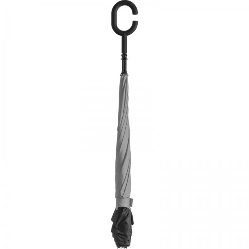 Parasol składany odwrotnie niż tradycyjny, dzięki czemu można np. bez problemu wsiąść do samochodu w trakcie deszczu. Parasol wykonany z podwójnej tkaniny typu pongee 190T i poliestru, posiada pasek na nadgarstek.