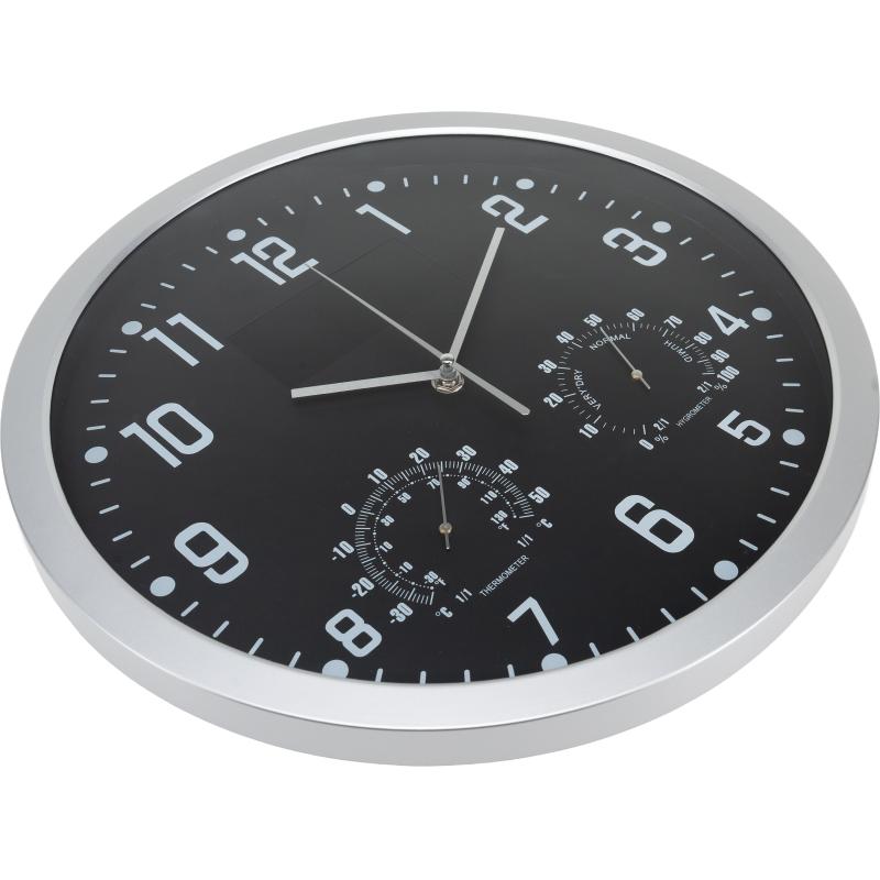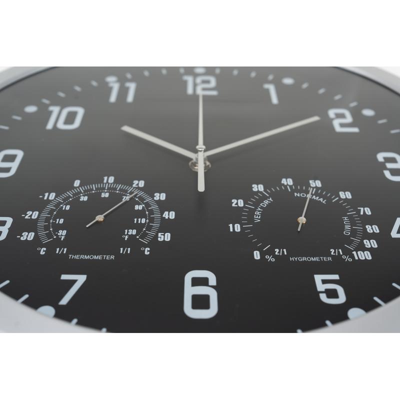 Zegary firmy CrisMa cechuje wysoka wytrzymałość i elegancki wygląd. Ten model, oprócz wskazywania godzin, pokazuje temperaturę oraz wilgotność powietrza. Estetyczna i wytrzymała obudowa, cichy mechanizm zasilany wyłącznie jedną bateria AA. Brak baterii w zestawie.