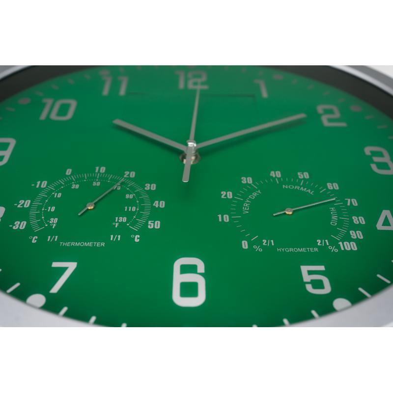 Zegary firmy CrisMa cechuje wysoka wytrzymałość i elegancki wygląd. Ten model, oprócz wskazywania godzin, pokazuje temperaturę oraz wilgotność powietrza. Estetyczna i wytrzymała obudowa, cichy mechanizm zasilany wyłącznie jedną bateria AA. Brak baterii w zestawie.