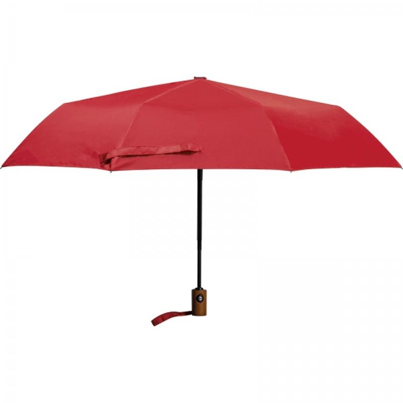 Automatyczna parasolka, wykonana z materiału rPET pochodzącego z recyklingu, ze stelażem z włókna szklanego. Parasol posiada drewnianą rączkę i pasek na rękę. Po złożeniu parasolka pakowana jest w dopasowane kolorystycznie etui z rPET.