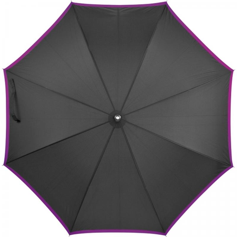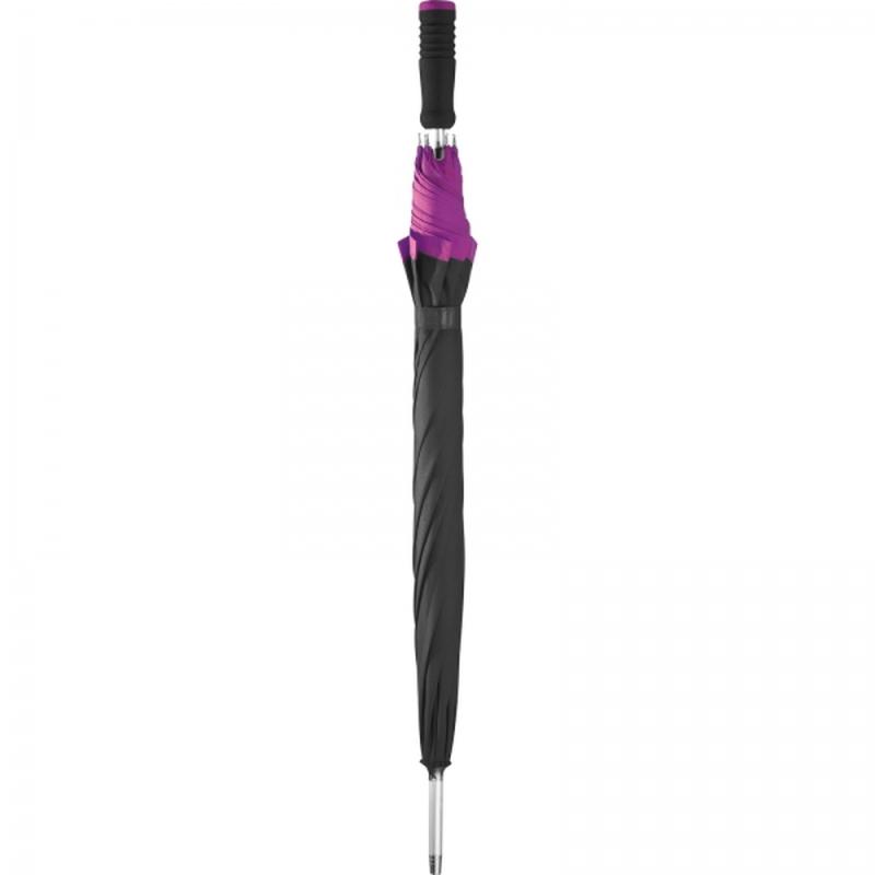 Elegancki parasol automatyczny wykonany z PU, metalu i materiału pongee. Parasol posiada miękki, prosty uchwyt.