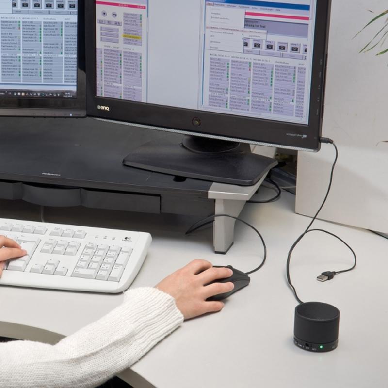Mini głośnik Bluetooth o gumowanej powierzchni, z radiem i portem USB do ładowania. Można go bezprzewodowo połączyć z tabletem lub smartfonem. Zasięg do 10 m, czas pracy do 5 godzin, moc 3wat.