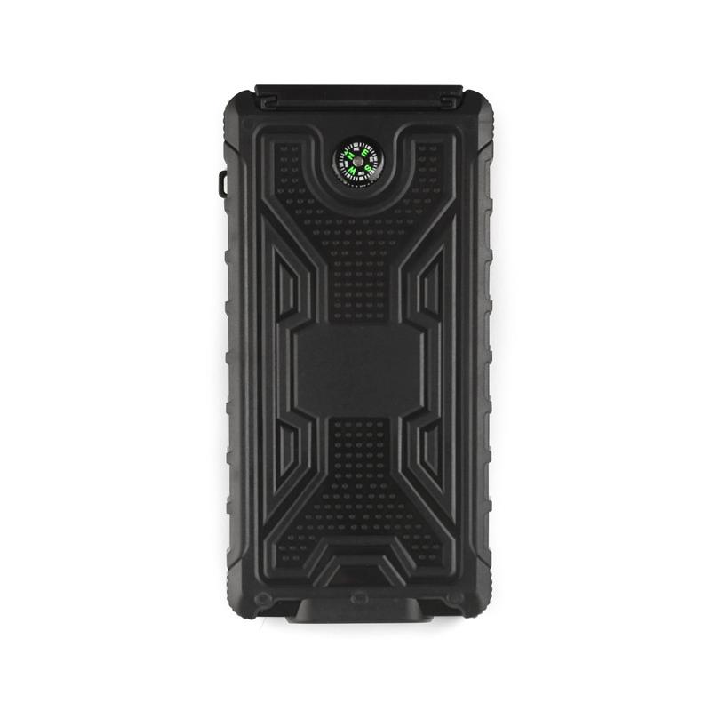 Power bank SOL posiada panel solarny i dużą pojemność 10 000 mAh, która wystarczy na kilka ładowań twojego telefonu. Diody pokazują aktualny poziom naładowania baterii. Wyposażony jest w podwójną latarkę z czterema trybami świecenia i wbudowany kompas. W zestawie standardowy kabel micro USB do ładowania. Produkt jest zgodny z odpowiednimi dyrektywami Unii Europejskiej, posiada znak CE oraz 1 rok gwarancji. Dane techniczne: wejście (micro USB i USB typu C) 5V/2A, 2 wyjścia USB 5V/2.1A (max), bateria litowo-polimerowa.