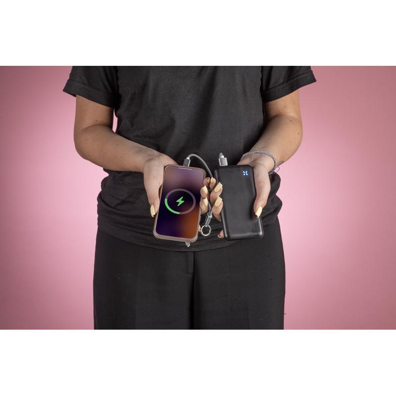 Power bank MAGION o pojemności 10 000 mAh to niezawodne źródło energii w podróży i w pracy. Obsługuje funkcję szybkiego ładowania z mocą 22,5 W oraz technologię Power Delivery, dzięki czemu sprawnie naładuje smartfony i inne urządzenia mobilne. Wyposażony jest w praktyczne porty: micro USB, USB-C oraz dwa gniazda USB-A, co umożliwia ładowanie kilku urządzeń jednocześnie. Smukła, nowoczesna forma sprawia, że łatwo mieści się w torbie lub plecaku. Dzięki usłudze znakowania power bank może zostać oznaczony logo firmy, stając się funkcjonalnym i jednocześnie atrakcyjnym gadżetem reklamowym.