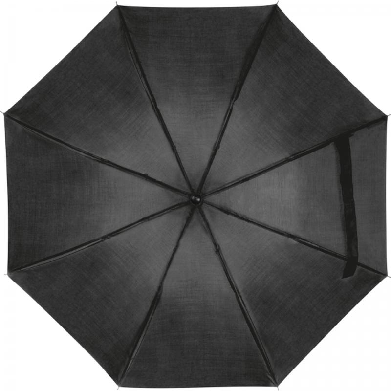 Ręcznie otwierany składany parasol kieszonkowy wykonany z poliestru, z elementami metalowymi i plastikowymi, z pokrowcem ochronnym.