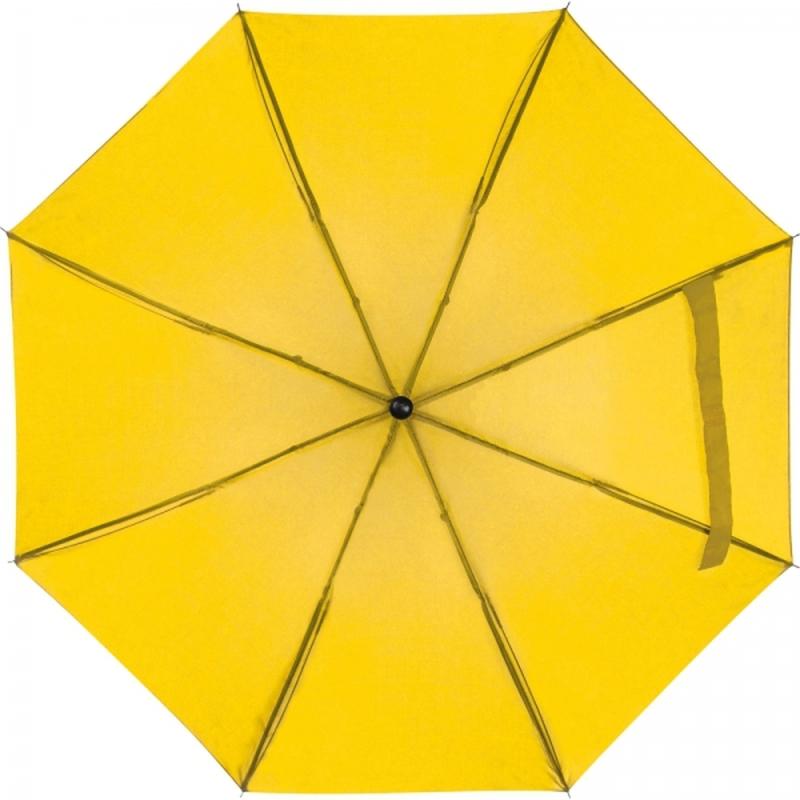 Ręcznie otwierany składany parasol kieszonkowy wykonany z poliestru, z elementami metalowymi i plastikowymi, z pokrowcem ochronnym.