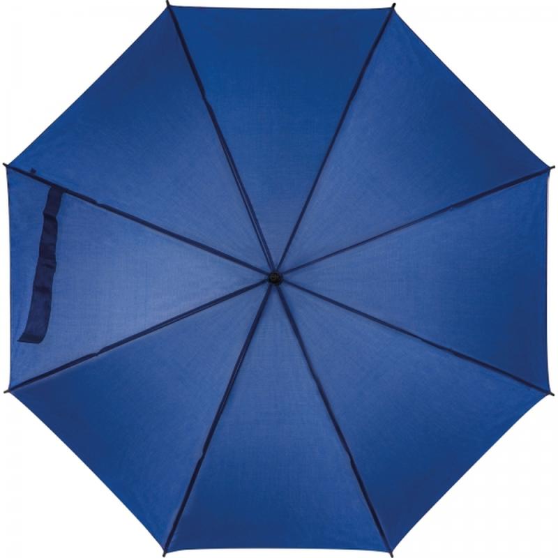 Automatyczny parasol z poliestru z wygiętą, plastikową rączką.