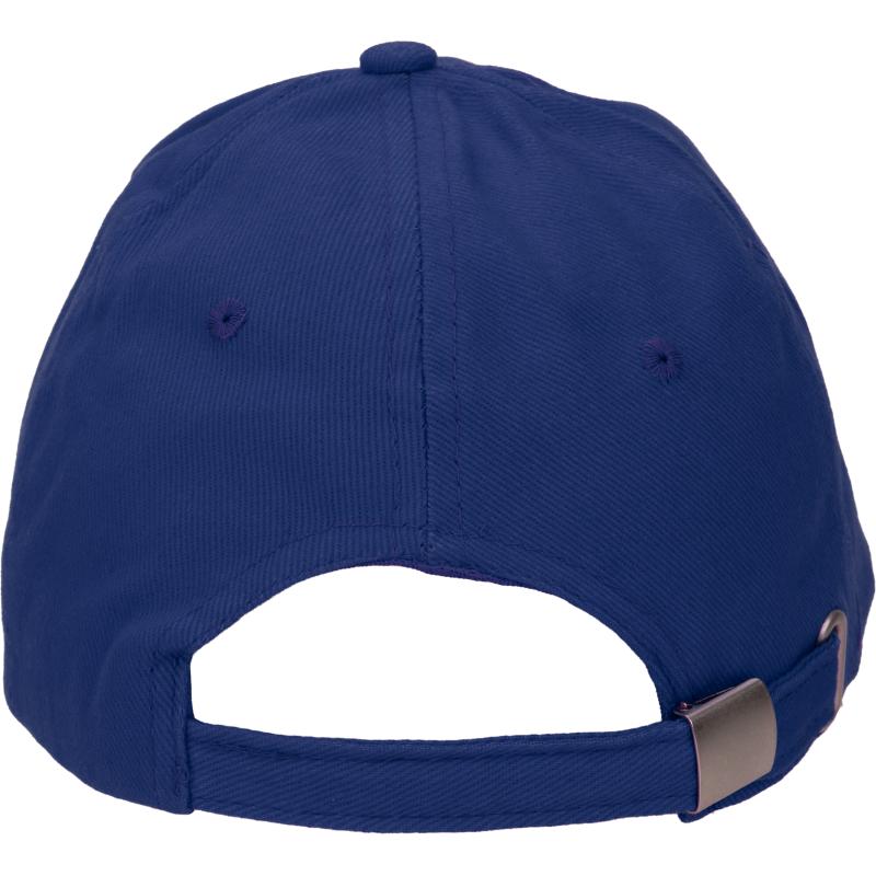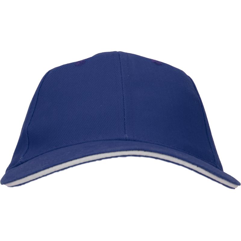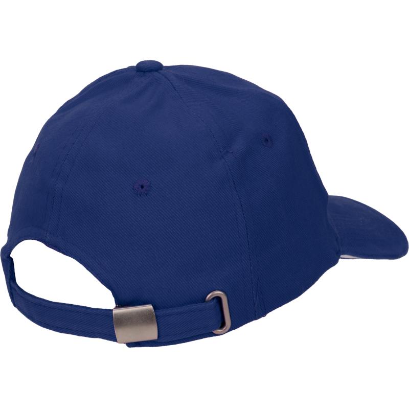 Bawełniana, 6-panelowa czapka z daszkiem typu Sandwich, wykonana z bawełny czesanej wolnej od AZO (gramatura 260 g/m²), regulowana za pomocą metalowego zapięcia.