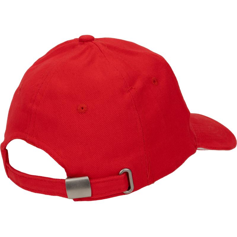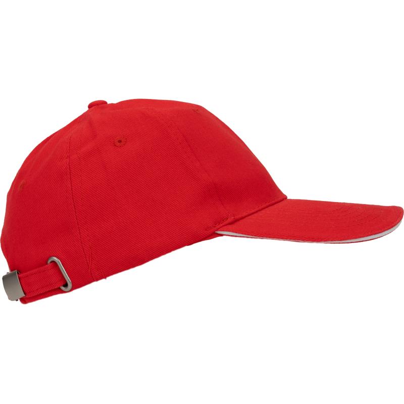 Bawełniana, 6-panelowa czapka z daszkiem typu Sandwich, wykonana z bawełny czesanej wolnej od AZO (gramatura 260 g/m²), regulowana za pomocą metalowego zapięcia.