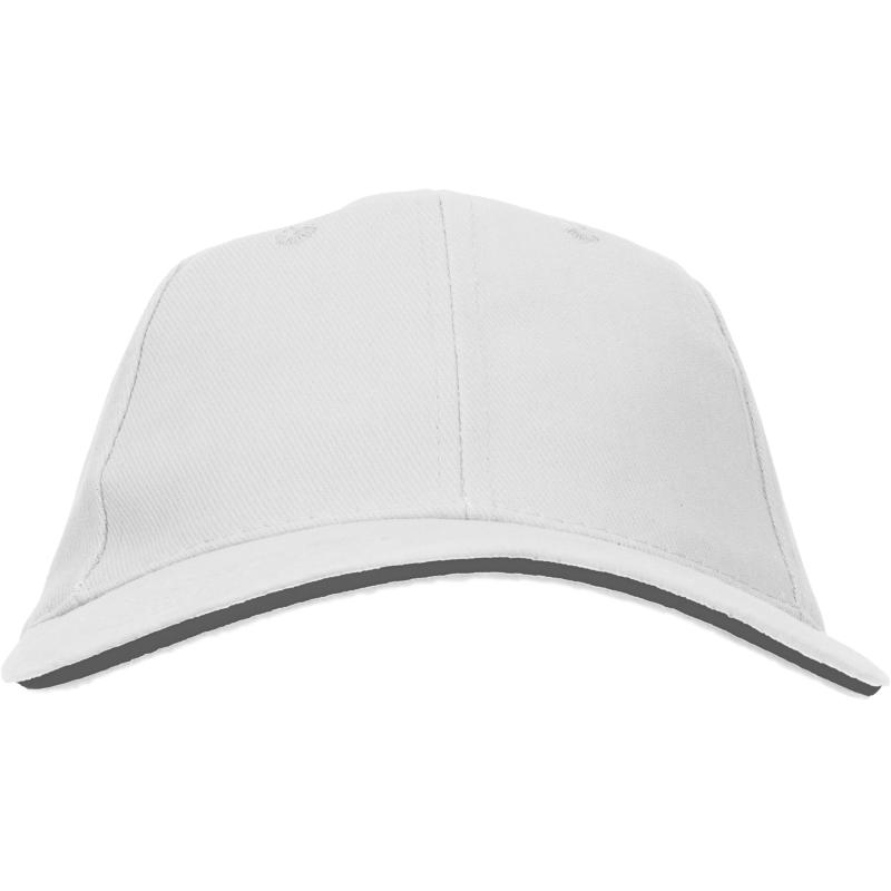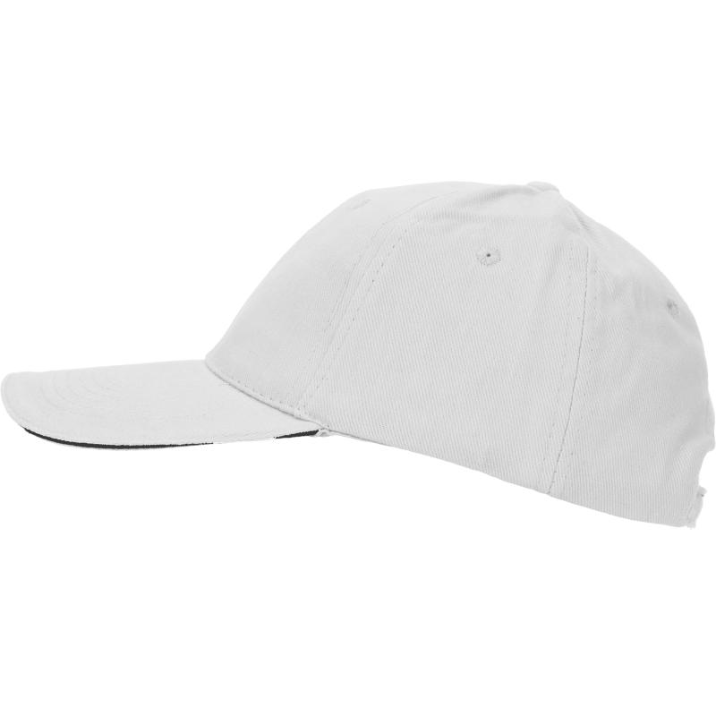 Bawełniana, 6-panelowa czapka z daszkiem typu Sandwich, wykonana z bawełny czesanej wolnej od AZO (gramatura 260 g/m²), regulowana za pomocą metalowego zapięcia.