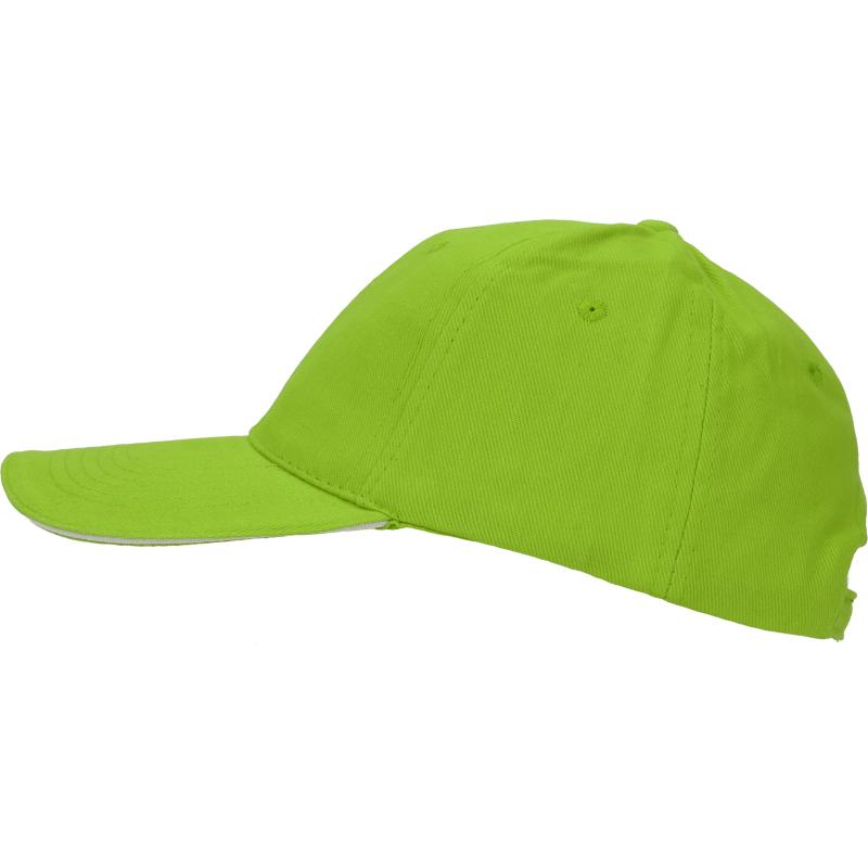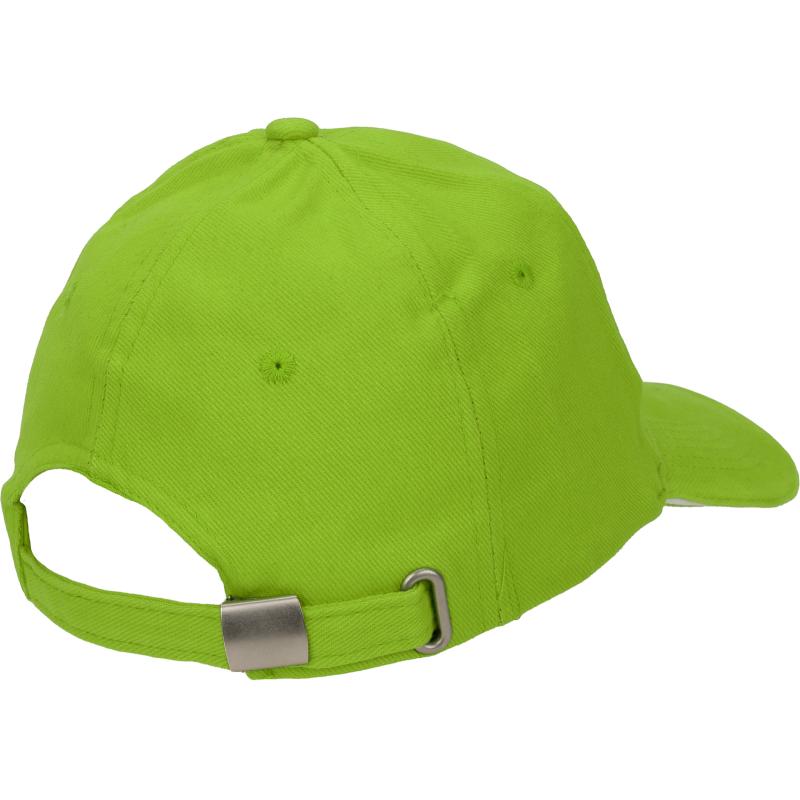 Bawełniana, 6-panelowa czapka z daszkiem typu Sandwich, wykonana z bawełny czesanej wolnej od AZO (gramatura 260 g/m²), regulowana za pomocą metalowego zapięcia.