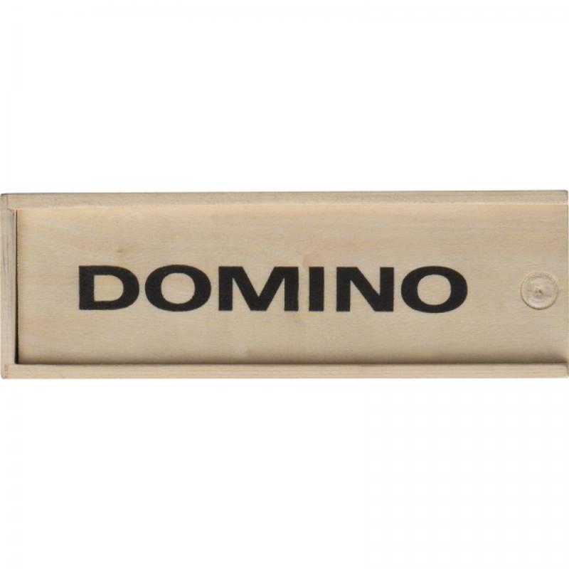 Klasyczna gra domino w drewnianym pudełku.