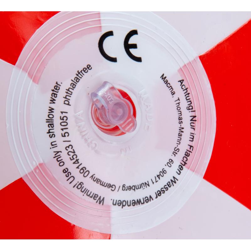 Dwukolorowa dmuchana piłka plażowa, wykonana z PVC, nie zawiera ftalanów. Długość panelu: 40 cm (średnica ~26 cm).