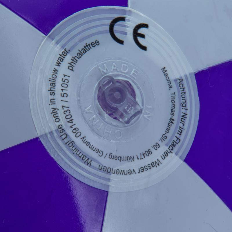 Dwukolorowa dmuchana piłka plażowa, wykonana z PVC, nie zawiera ftalanów. Długość panelu: 40 cm (średnica ~26 cm).